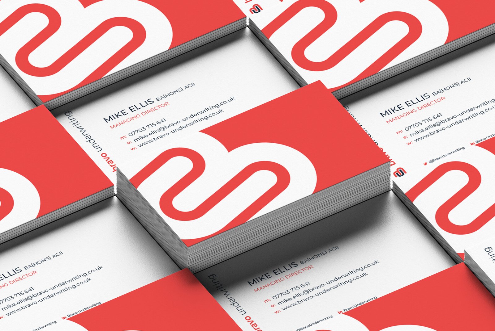 As part of an internal rebrand, Bravo Underwriting’s branding was to be updated to fit more with the style and naming of the wider group. The logo was totally revamped to appeal to a wider audience and to bring the brand into a much more modern look and feel. The colours were changed from purple to bright coral with a secondary colour of dark blue, to ensure the brand linked back to the overarching group.