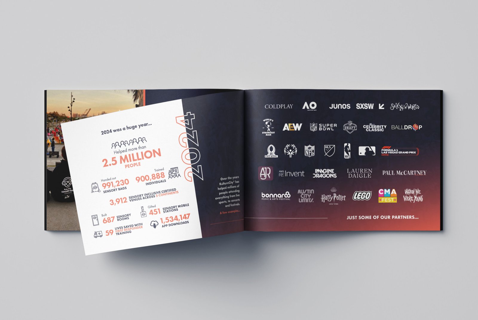 One of our first tasks when contracted by KultureCity® was to polish up their existing brand. This included redrawing their iconic logo to be symmetrical and refined. Continuing from this we created and implemented a complete set of brand guidelines, including new colours, a dedicated font, logo usage and a photographic identity. This is imperative to the brand being applied consistently throughout all their activities around the world.